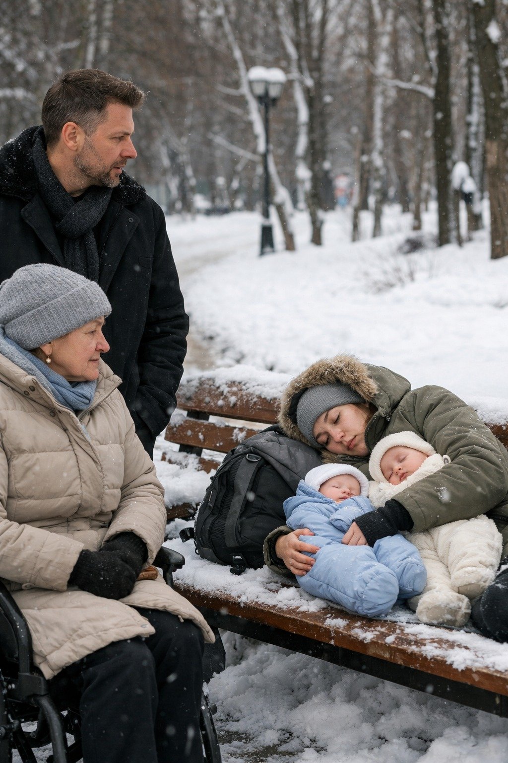 Adrián mozdulatlanul állt. Az a világ, amelyben eddig számokkal, emberekkel és folyamatokkal irányított mindent, hirtelen egyetlen padra zsugorodott. Egy nőre, akit valaha szeretett. Két apró csomagra, amelyekből halk, alig hallható szuszogás hallatszott.